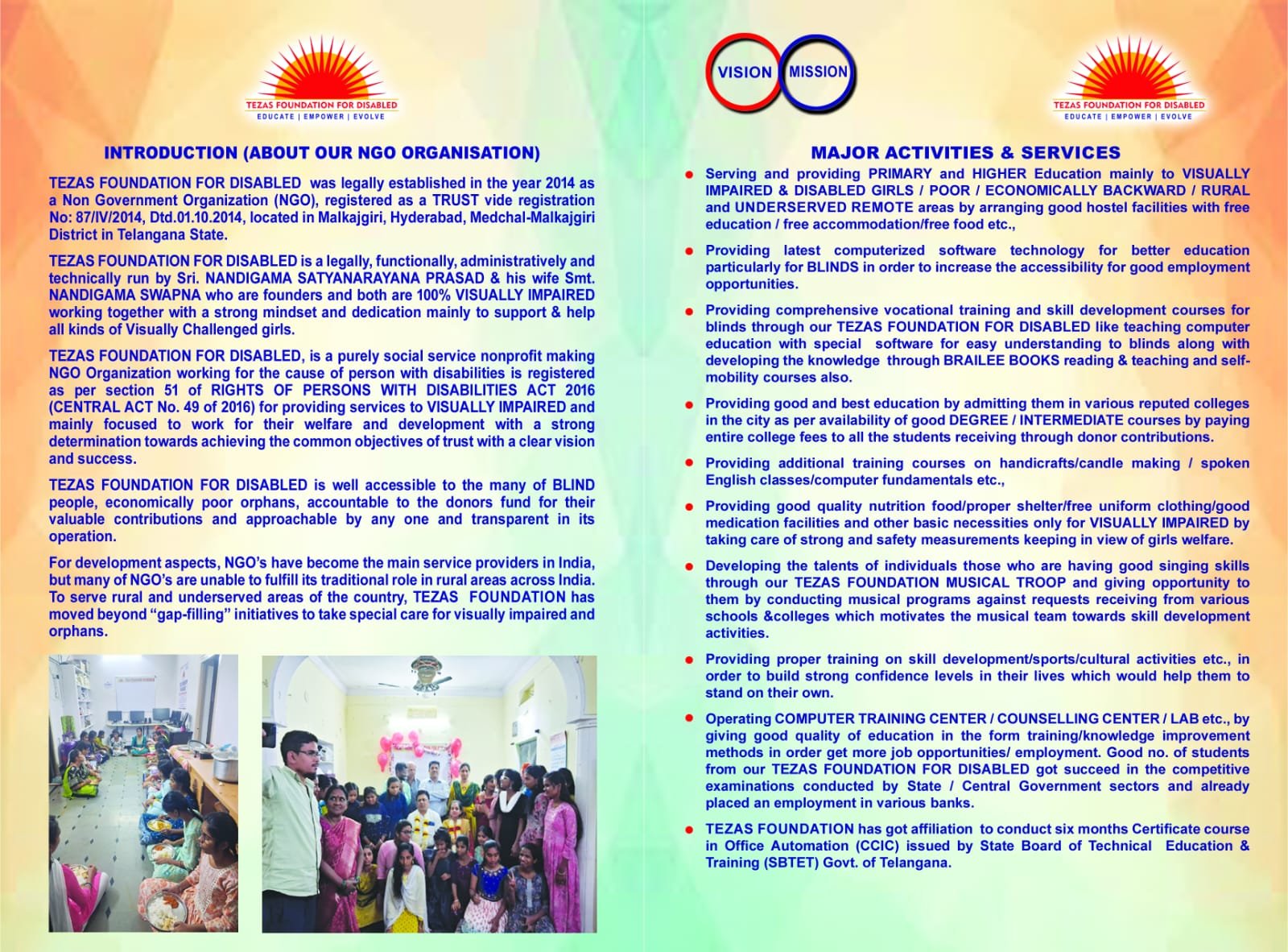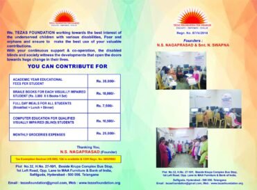 REGISTRATION NUMBER: 87/IV/2014 (INDIAN TRUSTS ACT 1882) | CALL :+91 +91-9441033802 || +91-40-40021122| Email : tezasfoundation@gmail.com || tezasfoundationhyd@yahoo.com